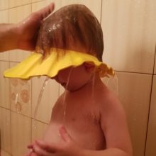 Excellent cap for keeping water off child’s face. I bought these for our 4 year old who kept screaming in the bath or shower when we’d wash her hair and water got on her face. I had low expectations of this product as it’s just a flimsy piece of foam. BUT it absolutely WORKS!!! My daughter is pleased and doesn’t scream any more. I snap it on the second to the last button and voila it’s magical. It looks silly but works perfectly. I definitely recommend this product to any parent with a child that struggles with water on their face while washing in the tub or shower.