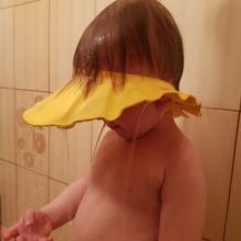 My 8 month old granddaughter was hating having her hair washed. I had an inflatable ducky hat for my daughter when she was a baby that kept the water out of her eyes. I found this product and ordered it. It works like a charm and the ear flaps are an added bonus as the water stays out of babies eyes and ears as well. She now loves being in the bath and hair washing is a breeze.