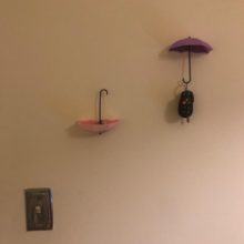 These little umbrellas are so cute. I put them in a corner of our room. I've got rings, necklaces, bracelets and small charms on them. They have a very adhesive back and a good hold. They're very bright colored and I'd reccomend to others. Would be great in a child's room.