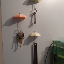 These umbrella key hooks are so cute! I did not give a great rating for adhesion because I used Command Strips to put them up as I am in a rented home. Otherwise I like them a lot!